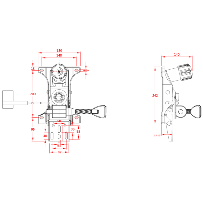 • 倾仰角度无级锁定,倾仰角度0 ~ 17°。
